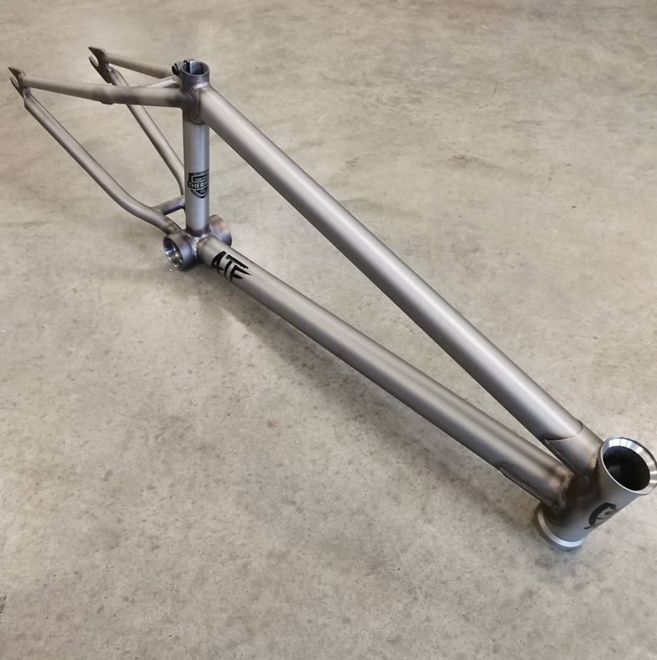 Also a classic, this raw 21" S&M "ATF" frame we just got in. 75/71 angles, 13.4-13.875" chainstays, 8.5" standover and 11.7" bb height. Come have a look!