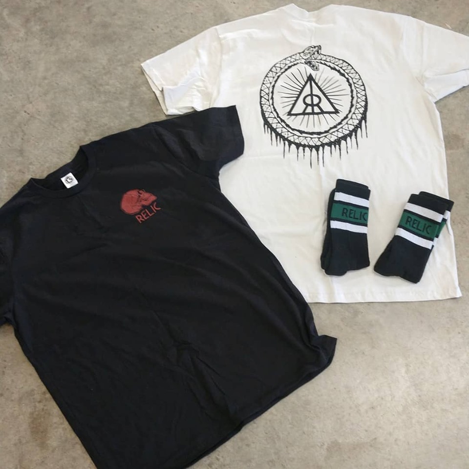 Got in some rad tees and socks from Relic, and also some Vans Sk8-Mid Pros in black/fallen rock, and Sk8-Hi Pros in all black!