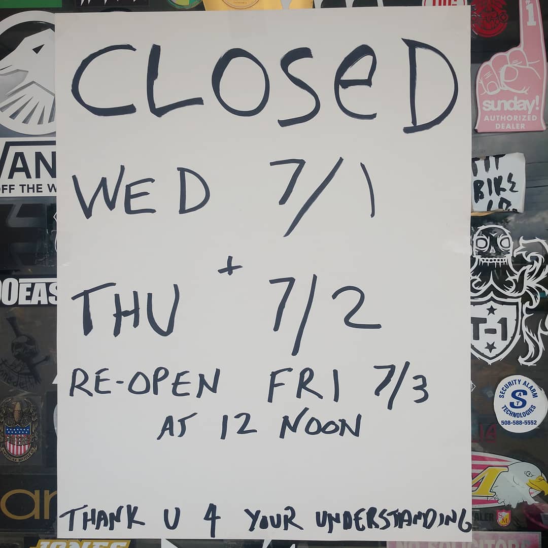 We will be closed temporarily as a public safety precaution... it turns out that I have been in contact with someone who has tested positive for Covid. I have not experienced any symptoms, but I have been tested and I am awaiting test results, which unfortunately can take 7-10 days. This has been a very, very long four months for me, I very much appreciate your patience and continued support. If you currently have a bike in the shop for repair, or any special orders etc, I will be in touch with you at some point. Thank you so much for your understanding and we will see you on the other side! -John M
