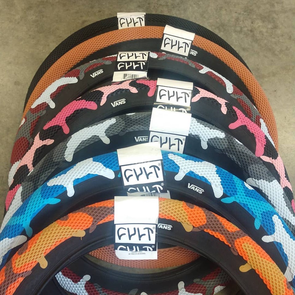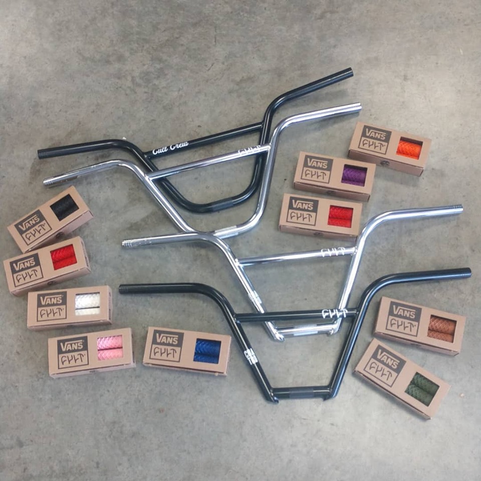 Got in a whole bunch of Cult stuff today, including a restock on the Cult X Vans camo tires (two new colors), Brandon Begin's "Heaven's Gate" frame and bars, a restock on Cult X Maul's pegs (105mm or 115mm), some rad Cult padsets and layback pivotal seatposts!