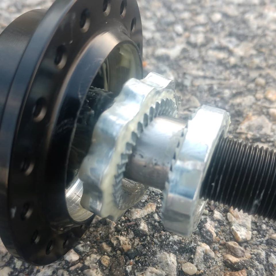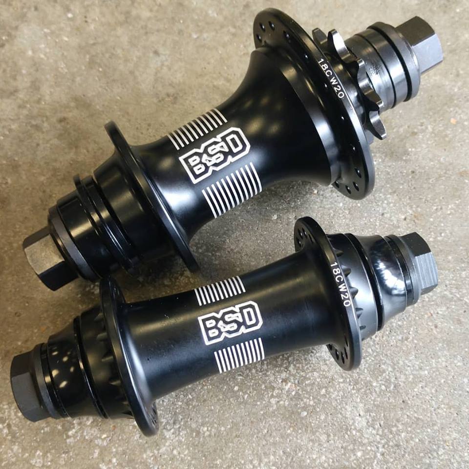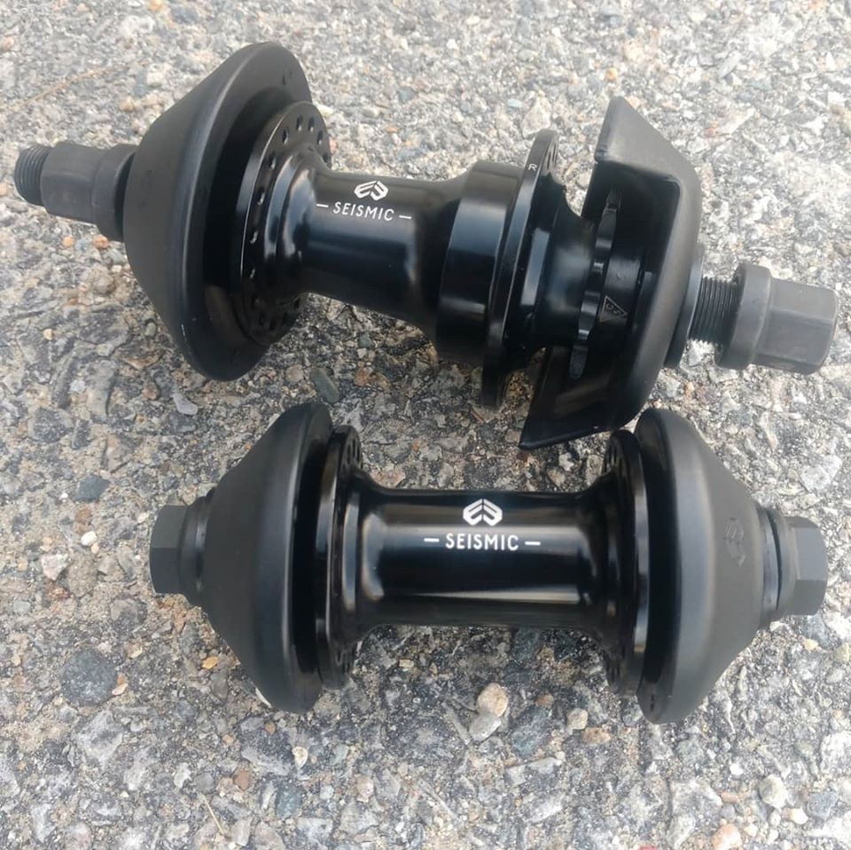 Got in some rad new stuff form Eclat! The "Seismic" cassette hub uses ratchet rings (proven mountain bike technology) instead of individual springs and pawls, for solid engagement, increased strength and a pretty wild sound! Front hub features oversized bearings and longer than normal bolts.