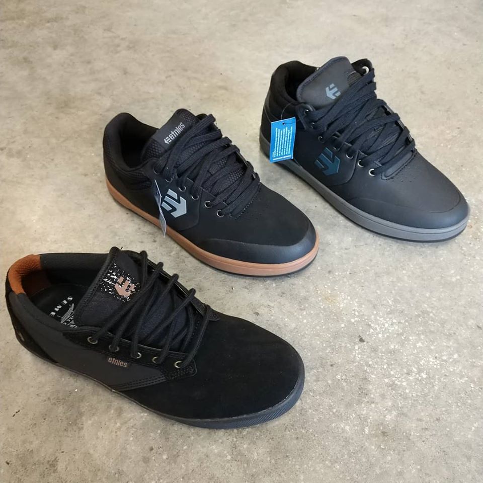 Pretty stoked on the mountain bike-specific Etnies shoes we got in. Brandon Semenuk's "Jameson Mid Crank", and the "Marana Crank"/"Marana Mid Crank". Stiffer soles, tongues gussets, asymmetrical collars for ankle protection, and the Maranas have Thinsulate insulation and Scotchgard protection to keep your feet warm and dry!