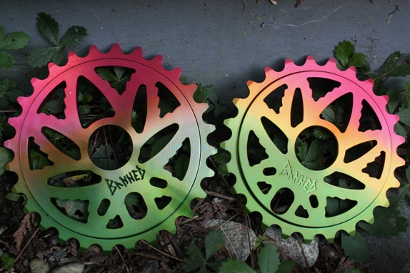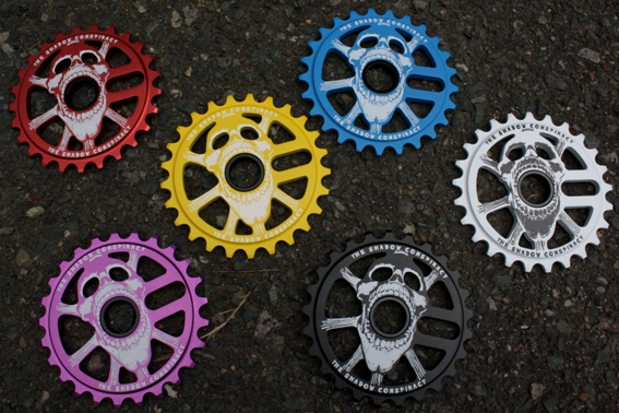 Also got in a bunch of yellow Shadow Conspiracy parts, including their new "Scream" sprocket, which is basically a 7075 aluminum version of the Crank-N-Bones (strong, cheap and light)... Also got Mutiny "Glam Bars (V2)" in black or red... 8.125" rise, 29" wide, 12 degree backsweep and 1 degree up... got in some Banned "Budsaw" sprockets too, I know a few of you will be into these... sorry, no rasta yet...