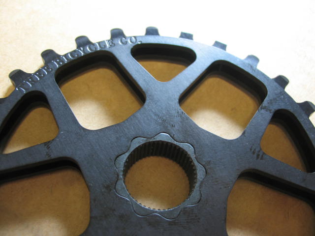 Tree "spline drive" sprockets showed up as well... these can be used on Profile or similar (48 spline, 19mm) crank spindles, and basically you can eliminate the bolt that usually holds your sprocket to the cranks arm... save a little weight, or go left side drive without having to get new cranks...