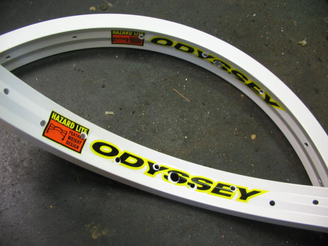 Bunch of stuff is back in stock as well... 14mm Odyssey Dirt forks, red Odyssey Civilian Svelte bars, black Primo Stricker grips, white Linear cables, a bunch of Odyssey rims, and a bunch of FBM stuff, including Rumble Seats, Web Posts, hubguards, seat clamps, sprockets, ramp stickers, and flasks...